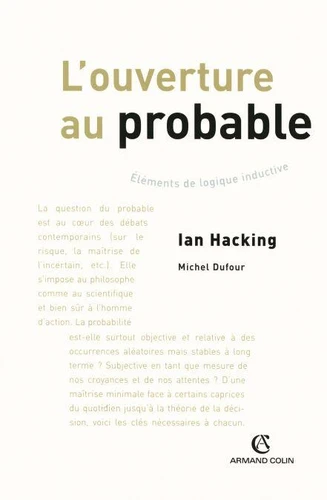 Aucune maîtrise préalable en logique formelle ou en mathématiques - hormis les quatre opérations ! - n'est requise pour prendre le risque de la lecture. Ian Hacking est professeur au Collège de France et à l'Université de Toronto. Son enseignement porte sur la philosophie et l'histoire des concepts scientifiques. Michel Dufour, chercheur au CEA, est maître de conférences en philosophie au département Information et Communication de l'Université de la Sorbonne Nouvelle.