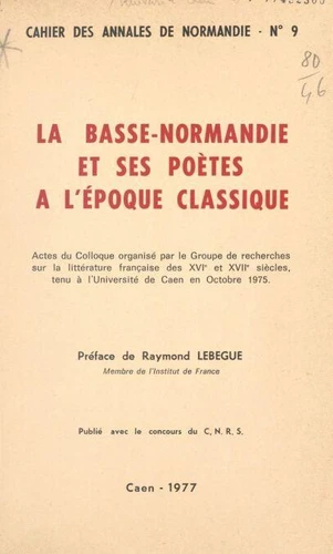La Basse - Normandie et ses poètes à l'époque classique. Actes du Colloque organisé par le Groupe de recherches sur la littérature française des XVI¡ et XVII“ siècles, tenu à l'Université de Caen en octobre 1975