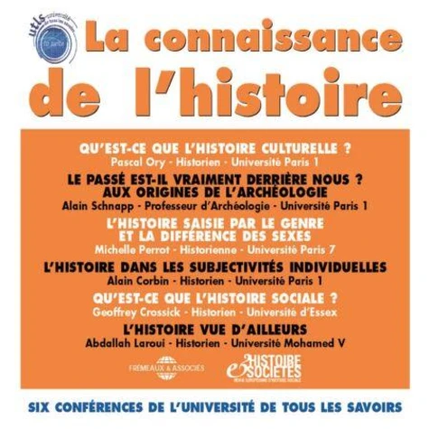 Qu'est-ce que l'histoire culturelle ? Pascal Ory - Historien . Le passé est-il vraiment derrière nous ? aux origines de l'archéologie Alain Schnapp - Professeur d'Archéologie . L'histoire saisie par le genre et la différence des sexes Michelle Perrot - Historienne . L'histoire dans les subjectivités individuelles Alain Corbin - Historien . Qu'est-ce que l'histoire sociale ? Geoffrey Crossick - Historien .