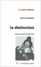 On pourrait, à titre d'hygiène critique, commencer la lecture par le chapitre final, intitulé « Éléments pour une critique vulgaire des critiques pures », qui porte au jour les catégories sociales de perception et d'appréciation que Kant met en ouvre dans son analyse du jugement de goût. Mais l'essentiel est dans la recherche qui, au prix d'un énorme travail d'enquête empirique et de critique théorique, conduit à une reformulation de toutes les interrogations traditionnelles sur le beau, l'art, le goût, la culture.