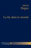 La fin dans le monde est une composition en cinq parties. Le titre profite de l'homonymie heureuse avec « la faim dans le monde » pour reprendre le motif lancinant « apocalyptique » de la fin du monde et des fins annoncées (de la métaphysique, de l'Histoire des religions, etc.). La première partie est autobiographique : elle évoque discrètement Jacques Derrida (son amitié et son deuil). La deuxième partie, qui renverse la fameuse formule de Coleridge (a witting suspension of disbelief ») creuse philosophiquement et combativement la relation du sujet moderne (« autonome en émancipation ») avec la foi, les croyances, la laïcité, la « sortie du religieux »...