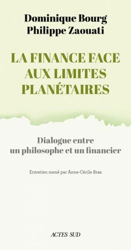 À travers leur échange, Dominique Bourg et Philippe Zaouati brossent un état des lieux sans concession du système financier actuel et de sa capacité à faire évoluer l'économie dans le bon sens. Avec une certitude commune : "Même si nous pensons la catastrophe inéluctable, nous devons continuer à agir."