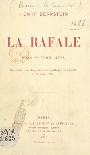 La rafale. Pièce en trois actes, représentée pour la première fois au Théâtre du Gymnase le 20 octobre 1905