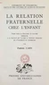 La relation fraternelle chez l'enfant. Thèse pour le Doctorat ès lettres