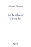 « Le bonheur nous hante, comme un beau souvenir ou un rêve, comme une perte et une promesse ». Tels sont les premiers mots de Michael Edwards qui nous propose de réfléchir à la manière dont nous concevons la vie sur terre. Comment la littérature, la peinture et la musique découvrent-elles et chantent-elles le bonheur de l'ici, au sein d'un monde aussi malheureux et malade ? Ainsi la vision de Baudelaire qui considère que le bonheur est dans l'infini, l'inconnu, diffère-t-elle sensiblement de celle de Claudel.