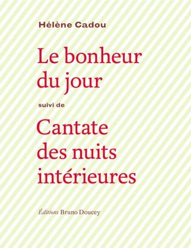 Le livre d'Hélène Cadou que font paraître les Editions Bruno Doucey rassemble ses deux premiers recueils publiés aux Editions Seghers au cours des années 1950 : Le Bonheur du jour (1956) et Cantate des nuits intérieures (1958). Celle qui a perdu l'homme de sa vie, disparu prématurément à l'âge de 31 ans, n'entre pas dans le lamento d'une vie brisée par le chagrin, mais dans un dialogue fertile, souvent solaire, avec la poésie de l'absent.
