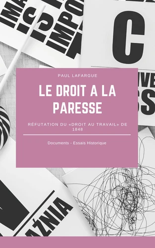 Voici un texte très célèbre, au succès jamais démenti, d'un « disciple » de Karl Marx. L'entame du texte est des plus explicite: Une étrange folie possède les classes ouvrières des nations où règne la civilisation capitaliste. Cette folie traîne à sa suite des misères individuelles et sociales qui, depuis des siècles, torturent la triste humanité. Cette folie est l'amour du travail, la passion moribonde du travail, poussée jusqu'à l'épuisement des forces vitales de l'individu et de sa progéniture.