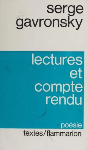 C'est par une suite de déplacements logiques que le discours de Serge Gavronsky nous rappelle sans cesse la vertu du texte en état de devenir. Cela sur un tissu culturel peu utilisé : mots échappés d'un contexte antérieur ; réflexion où s'entremêle une sensibilité rassie. Ce déchiffrement auquel le lecteur s'associe se veut aussi témoin devant le texte qui vibre (vit) dans une ampleur toujours restreinte.
