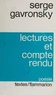 Le lecteur est enfin sommé à la partition verbale : redécouverte de la grâce dans un univers clos où notre légitimité est mise en question du fait de notre malchance à vouloir nous situer dans ce discours actuel, profond et immobile. Discours figé dans une attente où résonne la voix originale et puissante de cette série d'annotations (musicale à sa façon) qui constitue la contradiction littérale de lectures et compte rendu.