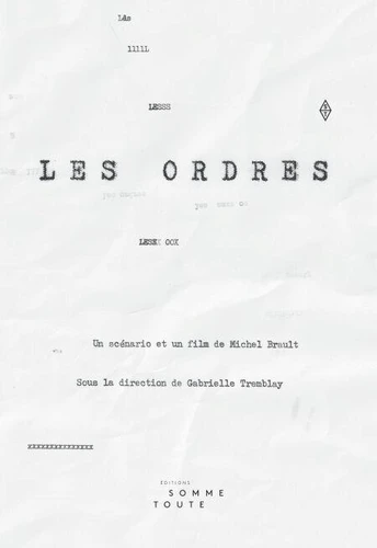 Tant de choses ont été dites et écrites à propos du cinéma de Michel Brault et pourtant, son travail de scénarisation est largement méconnu. Avec l'édition critique du scénario Les ordres, 50 ans après la sortie du film, le présent ouvrage Les ordres : un scénario et un film de Michel Brault offre un accès inédit à un projet scénaristique singulier.