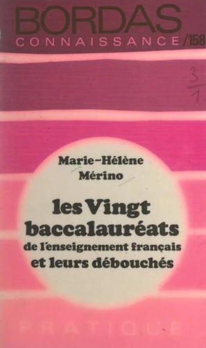 Cet ouvrage devrait permettre aux adolescents - et surtout à leurs parents - de prendre conscience des paliers importants de l'orientation, de choisir - en connaissance de cause - la voie la meilleure pour acquérir une formation déterminée, d'être informés de manière très large sur les possibilités ouvertes par les différents types de Baccalauréat, tant sur le plan des études supérieures, courtes ou longues, que sur celui de l'entrée directe dans une profession.