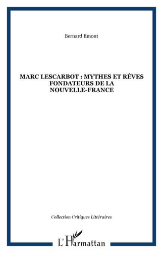 Marc Lescarbot (1570-1634), à ses contemporains pressés de douleur par trente ans de « troubles civils » propose un projet nouveau. Cette aventure est la construction d?une « Nouvelle France ». Son départ pour ce qui deviendra le Canada, prenait une valeur de pèlerinage sur la tombe des premiers pionniers. Il en ramena des trophées et une ample moisson de poèmes. En 1608, il reçut le privilège d?imprimer l?Histoire de la Nouvelle-France et le recueil de poèmes Muses de la Nouvelle-France.