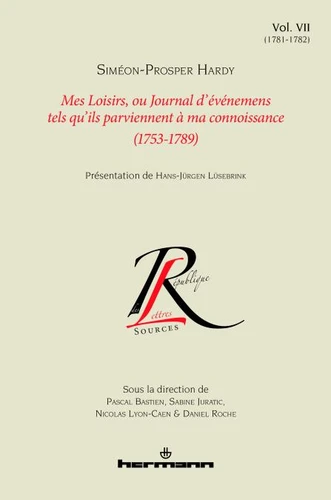 Siméon-Prosper Hardy poursuit la rédaction de Mes Loisirs avec la même énergie et la même inquiétude et, en 1782, engage le sixième registre de son Journal. Hardy a rarement été aussi attentif à la situation internationale et, depuis son cabinet ou à travers ses promenades, il rapporte et discute des événements dont les échos traverseront avec fracas la dernière décennie de l'Ancien Régime.