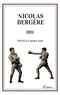 Bernard Tristan - Nicolas Bergère : Le destin favorise-t-il vraiment Nicolas Bergère ? Ou Nicolas Bergère ne fait-il que se soumettre à ses caprices ? Dans ce roman qui décrit l'arrivée à Paris d'un jeune homme et son succès de boxeur, le héros se laisse porter de rencontres en événements comme s'il n'était impliqué par aucun. Jeux de hasards générateurs de fortune comme de ruine, activités louches ou entraînements intensifs, amitiés ou amours, Nicolas touche à tout alors que tout semble glisser sur lui sans presque l'atteindre.