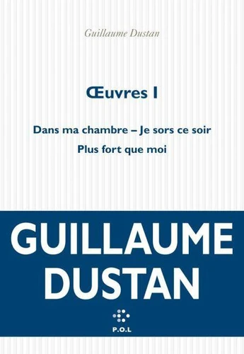 Ce premier volume des Ouvres, qui sera suivi de deux autres, regroupe la première trilogie parue aux éditions POL entre 1996 et 1998, Dans ma chambre, Je sors ce soir et Plus fort que moi. Cette édition accompagnée d'une Préface, d'une présentation et de notes pour chaque texte, est dirigée par Thomas Clerc.