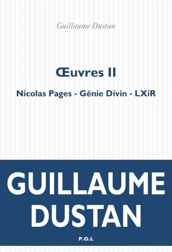 Voici le deuxième volume des ouvres complètes de Guillaume Dustan, regroupant Nicolas Pages (Prix de Flore 2000), Génie Divin et LXiR, publiés entre 1999 et 2002.