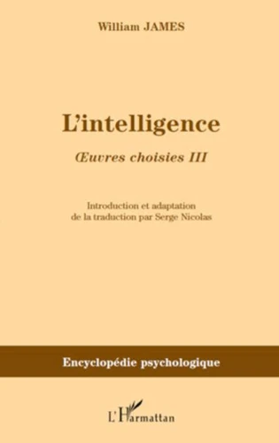 Pourquoi l'homme est plus intelligent que les animaux ? Le thème de l'intelligence fut traité par William James (1842-1910) au tout début de sa carrière de philosophe et de psychologue. Il publie en 1878 un article dont l'objectif est de s'interroger sur la caractéristique intellectuelle de l'homme et de la comparer à celle des animaux. L'ouvrage rassemble pour la première fois la traduction française de l'article original de James sur l'intelligence et le chapitre sur le raisonnement des "Principles of Psychology" (1890).
