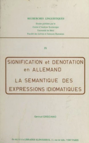 Signification et dénotation en allemand. La sémantique des expressions idiomatiques