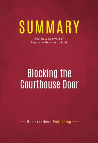 The must-read summary of Stephanie Mencimer's book "Blocking the Courthouse Door: How the Republican Party and Its Corporate Allies are Taking Away Your Right to Sue". This complete summary of "Blocking the Courthouse Door" by Stephanie Mencimer analyses her examination of all aspects of the tort reform campaign. She questions the approach of Republican-led Congress towards lawsuits and empowering corporations instead of individuals.