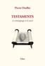 « Je me souviens de ce que je n'ai pas vécu: la Terreur, la Shoah, le Goulag. dont je reconnais l'écho et le reflet dans les témoignages et les testaments qu'auront laissés les êtres de parole et d'image qui se seront relayés pour dire ce qui dépasse l'Histoire en une Mémoire où c'est la genèse et la fin de l'Homme bien plus que sa durée qui marquent à jamais notre expérience de la temporalité. Primo Levi, Paul Celan, Jerome Rothenberg, Antoine Volodine, Alain Fleischer, Pierre Michon, Pierre Guyotat, Yannick Haenel, Catherine Mavrikakis, Céline Minard et Patrick Chatelier composent par leurs ouvres une chaîne mémorielle dont on peut suivre les nombreux maillons en deux grandes sections, "Testimonial" et "Testamentaire", afin de démêler les fils qui nouent l'Homme à la Mémoire, la Parole au Sacré, l'Histoire à l'Autre temps d'où elle vient et où elle semble aller.