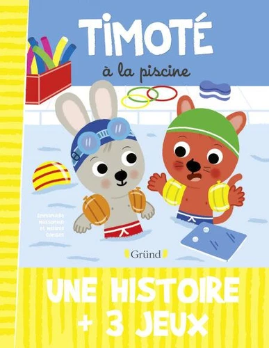 Aujourd'hui, Timoté va prendre son cours de natation à la piscine. Papi l'accompagne et il retrouve aussi ses amis. A travers cette nouvelle aventure, les petits découvriront un nouvel environnement et apprendront le vocabulaire lié à cette activité. Comme leurs petits héros, ils vaincront leur crainte et découvriront les joies de la natation.