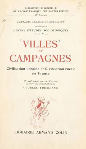 Villes et campagnes : civilisation urbaine et civilisation rurale en France. Deuxième semaine sociologique organisée à Paris, en mars 1951, par le Centre d'études sociologiques du Centre national de la recherche scientifique