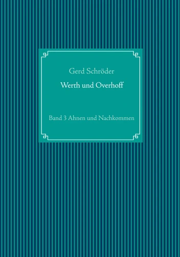Der vorliegende Band 3 der Reihe Werth und Overhoff beinhaltet Ahnentafeln, Urkunden, Daten und Bilder meiner Vorfahren aus den Familien Werth und Overhoff. Es sind unter anderem die Daten aus den Tagebüchern in den Bänden 1 und 2 eingeflossen; aber auch die Sammlungen von Pfarrer Heinrich Keppler und von Gerold Overhoff sowie die Unterlagen meiner Mutter Dr. Erika Schröder. Zusammengefasst ergibt das eine umfassende Datensammlung über die Familien Werth und Overhoff.