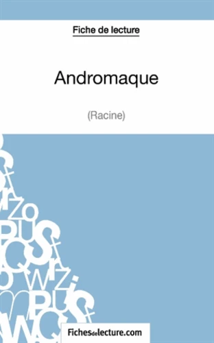 Fiche de lecture sur Andromaque de Racine. Notre analyse d'Andromaque de Racine comprend : un résumé d'Andromaque, une analyse des personnages et une analyse des axes de lecture. Cette fiche de lecture sur Andromaque a été rédigée par un professeur de français. A PROPOS DE LA COLLECTION La série FichesdeLecture.com offre des contenus éducatifs aux étudiants et aux professeurs tels que : des résumés, des analyses littéraires, des questionnaires et des commentaires sur la littérature moderne et classique.
