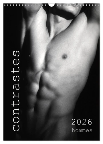 contrastes hommes (Calendrier mural 2026 DIN A3 horizontal), CALVENDO calendrier mensuel. Calendrier mensuel avec 13 photos en noir et blanc avec du nu artistique masculin