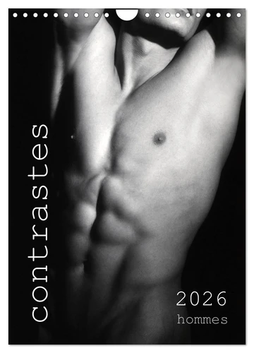 contrastes hommes (Calendrier mural 2026 DIN A4 horizontal), CALVENDO calendrier mensuel. Calendrier mensuel avec 13 photos en noir et blanc avec du nu artistique masculin