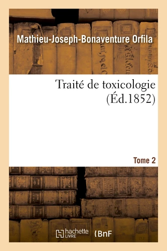 Traité de toxicologie. Tome 2 / par M. Orfila,... Date de l'édition originale : 1852 Sujet de l'ouvrage : Toxicologie Ce livre est la reproduction fidèle d'une oeuvre publiée avant 1920 et fait partie d'une collection de livres réimprimés à la demande éditée par Hachette Livre, dans le cadre d'un partenariat avec la Bibliothèque nationale de France, offrant l'opportunité d'accéder à des ouvrages anciens et souvent rares issus des fonds patrimoniaux de la BnF.