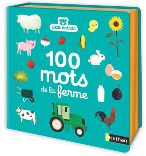 Un imagier de la ferme pour favoriser l'acquisition du langage dès le plus jeune âge ! 100 mots de la ferme regroupés par milieu : animaux, lieux (basse-cour, étable, pré), aliments, objets et outils, fruits et légumes... A vos côtés, le bébé découvre l'univers de la ferme, pointe du doigt les animaux, répète le nom des outils et des véhicules et reconnaît les fruits et légumes. Les sons prennent du sens : c'est le début du langage ! Un livre cartonné très léger, maniable et adaptés aux petites mains des bébés dès 6 mois.