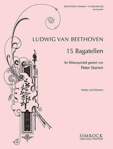 The present arrangement of several selected bagatelles by Beethoven shall help to fill this gap in the classical repertoire. Besides, it is precisely the genre of the small intimate bagatelle which Beethoven cultivated his whole life that is able to create its own new charm as wind chamber music. Instrumentation : wind quintet