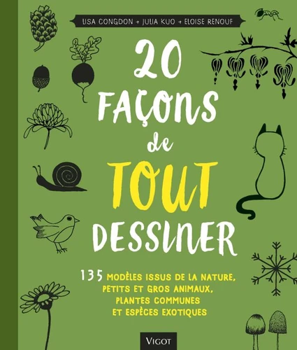 D'adorables chats, de jolies plumes, de malicieux, ratons-laveurs, d'élégants coquelicots ou encore de poétiques arbres sous la neige... les 135 thèmes abordés dans cette belle compilation mettent en valeur les merveilles de la nature. Grâce à une méthode très intuitive, vous trouverez l'inspiration parmi 2 700 dessins et vous découvrirez, pour chaque sujet, 20 façons de les reproduire. Des formes géométriques simples, un crayon et du papier, voilà ce qu'il vous faut pour esquisser, gribouiller et colorier les beautés de la faune et de la flore !