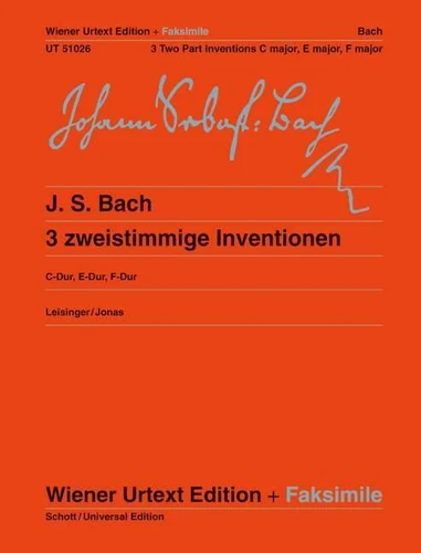 As in his days, Johann Sebastian Bach's Inventions form an integral part of the piano teaching literature even today. The three selected examples with facsimile give an insight into Bach's teaching workshop and his aim to teach his pupils 'to cultivate a cantabile style of playing and to gain from the beginning a strong foretaste of composition'. The edited musical text of the new edition is based on the revision of all inventions and symphonies of the composer presented by Ulrich Leisinger in 2007.