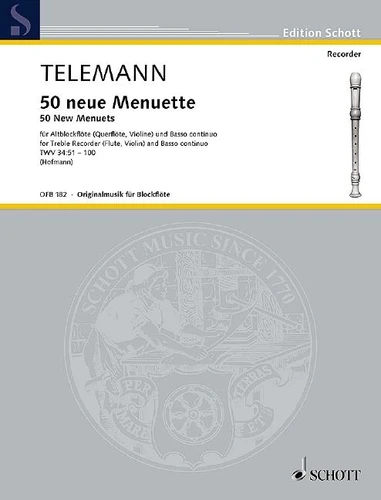 Georg Philipp Telemann gave more consideration to amateur musicians than any of the other great composers of this day. One of the many works he wrote specifically for amateurs is the collection presented here 'A Second Set of Seven times Seven plus One Minuet' by Melante (i. e. Telemann). These are extremely attractive, technically not too demanding pieces for domestic music making. They are also ideal for teaching with their short, clearly structured movements which introduce a comparatively wide range of key signatures (including Eb major, F minor, A major and B minor).