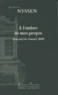 16 mai 2009 - Si j'écris ici chaque jour, c'est pour ne pas en perdre l'habitude, pour ne pas céder aux irrésolutions qui conduisent au silence, pour dresser un barrage contre les vagues du déclin, pour empêcher que les rouages se grippent, pour rouvrir les yeux sur l'insoupçonnable, pour arroser le désir avec des mots qui lui rendent des couleurs, pour faire que la mémoire n'abuse pas des grasses mati-nées et des siestes trop longues, pour ressusciter les morts et rassurer les vivants, pour rester complice des frasques de la fiction, pour nouer ce que j'ai appris à ce que j'ai peut-être réussi à enseigner, pour savoir (lieu commun) ce que je ne savais pas que j'allais écrire, pour dénuder le visible et caresser l'invisible, pour avoir des enfants avec les mots. Et c'est très simplement pour t'écrire ce que je n'arrive pas à te dire.