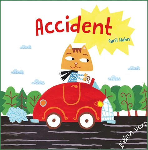 Monsieur Chat est au volant de sa voiture. Aïe ! Il n'a pas vu l'arbre devant lui. Accident !!! La voiture s'envole... et PAF ! retombe dans la ville ! Mais Monsieur Chat est toujours aussi tête en l'air...