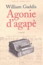Agonie d'agapè est le chant du cygne de William Gaddis, le monologue d un homme rongé par la maladie et assiégé par les pages d'un manuscrit qu'il n'a eu de cesse de reprendre au fil des ans, l'apogée d'une obsession vieille de quarante années. L'auteur des reconnaissances et de JR y développe une réflexion sur la mécanisation des arts et le déclin de l'artiste ; parvenu au seuil de sa vie, Gaddis laisse émerger une voix singulière, une voix faite de cassures et de glissements, une partition criblée de douloureux silences : un narrateur solitaire réduit à la parole, un naufragé, qui une dernière fois s'insurge contre les puissances du faux et le règne des ventriloques.