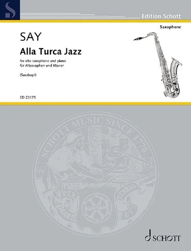 After the first eight bars have been presented in original form, typical elements of jazz superimposed on the still recognisable classical foundations can be discovered, such as syncopation of the top notes and ornamentation through chromatic blue notes, embedded in the at times frenzied chains of semiquavers. In the spirit of the work's improvisatory character, Say likes to perfom his Alla Turca Jazz in different combinations, for example accompanied by jazz singers of with orchestra.