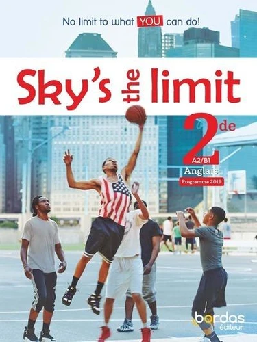 Sky's the limit 2de, no limit to what you can do ! Un manuel d'anglais 2de qui propose : Un large choix de séquences motivantes, problématisées et ancrées culturellemen t, déclinées selon les axes du nouveau programme. Des activités variées pour entraîner à toutes les activités langagières et renforcer la compétences médiation . Des doubles-pages différenciation pour accompagner tous vos élèves . Des outils pour réussir en développant des moyens langagiers, l' autonomie et la confiance (précis phonologique et grammatical, banque d'exercices et méthodologie). Pour favoriser l'autonomie, des fiches pdf imprimables e-worksheet . Pour la classe de seconde, le manuel d'anglais Sky's the limit est structuré ainsi : Une majorité de séquences courtes et quelques séquences longues intégrant une double page différenciation et davantage de faits de langue en contexte. Une préparation en douceur aux épreuves du contrôle continu