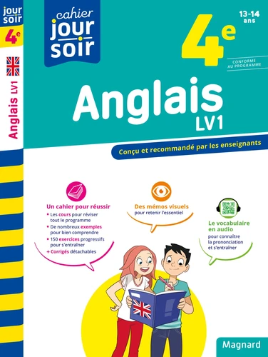 Pour revoir tout le programme et progresser en anglais - Réviser et s'entraîner - Tout le programme de 4e : vocabulaire et civilisation, grammaire - Observer et retenir : toutes les règles et de nombreux exemples - S'entraîner : 150 exercices adaptés à chaque élève - Des astuces et des conseils pour tout maîtriser - Les corrigés de tous les exercices à détacher au centre du cahier - Des annexes complètes en fin d'ouvrage avec : les verbes irréguliers, les constructions prépositionnelles, un lexique, et un bilan de vocabulaire sous forme de jeux - L'essentiel du programme en mémos visuels sur les rabats De nombreux schémas et cartes mentales - Aller plus loin avec des compléments audio en ligne Le vocabulaire des leçons en audio accessible gratuitement en ligne