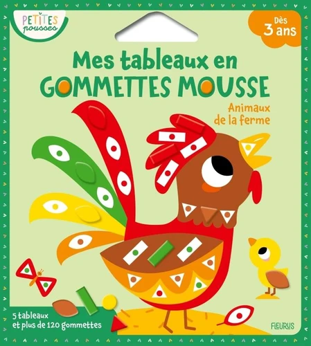 Découverte des formes et des couleurs, motricité fine, sens de l'observation, concentration, autonomie. 5 tableaux à décorer, plus de 120 gommettes en mousse.