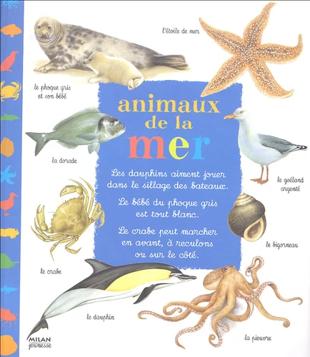 Les dauphins aiment jouer dans le sillage des bateaux. Le bébé du phoque gris est tout blanc. Le crabe peut marcher en avant, à reculons ou sur le côté.