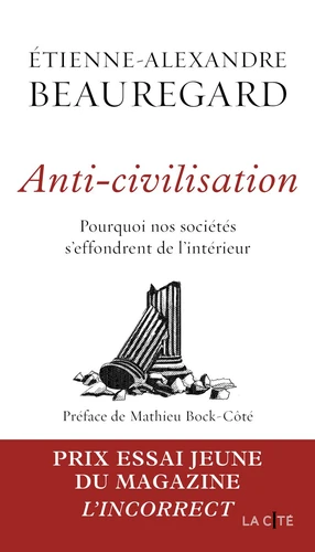 Et si la génération Z pouvait sauver l'Occident ? Dans Anti-Civilisation , Etienne-Alexandre Beauregard dresse un constat sans appel : la déconstruction des normes qui ont façonné la civilisation occidentale a plongé la société dans une crise profonde, qui a détruit les repères communs depuis la seconde moitié du XXe siècle. L'individualisme exacerbé a favorisé l'isolement et les tensions identitaires, en dissolvant le contrat social pour faire place à un choc des pulsions et des subjectivités.
