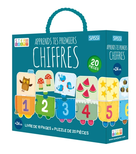 Livre de 10 pages + puzzle de 20 pièces pour développer les habiletés manuelles, et stimuler l'apprentissage et la concentration. Assemble les pièces et apprends tes premiers chiffres !