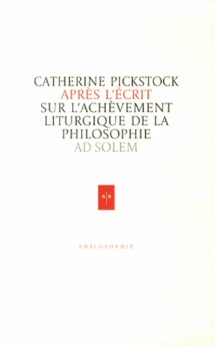 La liturgie offre une alternative théologique au primat naïf de la voix. Elle donne aussi les moyens de critiquer le primat naïf de l'inscrit. Vive et inscrite à la fois, la prière liturgique constitue aussi bien un acte de parole qu'un acte de présence. Celui qui aura lu le livre de Catherine Pickstock s'en convaincra aisément.
