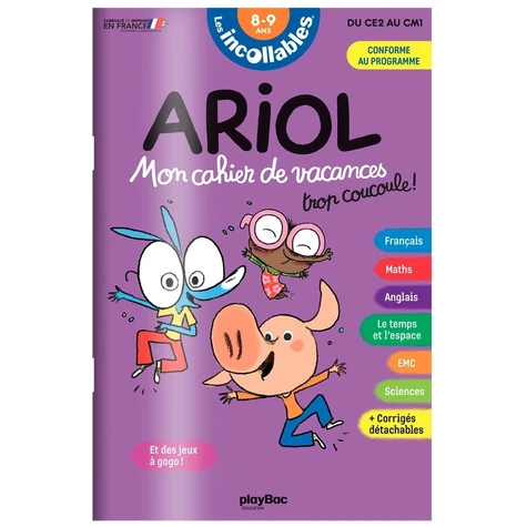 Avec le cahier de vacances Ariol, les révisions c'est trop coucoule ! Ouvre vite ce cahier de vacances pour réviser en t'amusant avec Ariol et tous ses copains ! - Au programme, les notions essentielles de ton année en français, maths, sciences, temps et espace, anglais et EMC. - Et pour t'amuser, une sélection jeux rigolos ! Plus de 80 exercices pour tester tes connaissances - Conforme au programme - Toutes les matières - Conçu avec un enseignant - Corrigés détachables Avec la caution Incollables - Créé par des enseignants, adopté par les enfants et les parents ! - La marque qui accompagne tous vos étés depuis 35 ans. Papier issu des forêts vosgiennes, produit par les papèteries Clairefontaine. Imprimé en France.