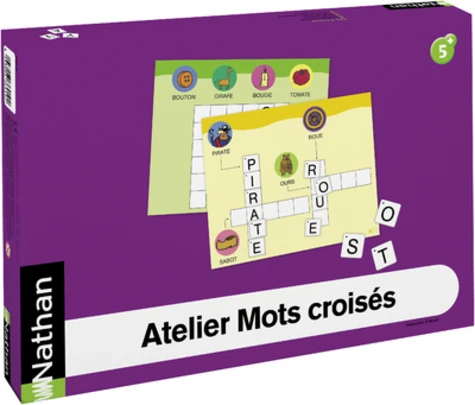 L'atelier d'entraînement Atelier Mots croisés pour 2 enfants a pour objectif de familiariser les enfants avec l'écrit et de leur faire découvrir le principe alphabétique, de manière à pouvoir aborder avec plus d'aisance l'apprentissage de la lecture. Les enfants remplissent les grilles de mots croisés avec les lettres magnétiques en s'aidant des mots illustrés et des lettres indices, comme dans une situation problème.