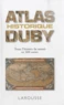 Pour comprendre les grandes invasions, les civilisations pré-colombiennes, l'influence des croisades, la Première Guerre mondiale ou bien encore les rapports internationaux depuis la chute du Mur, cet ouvrage permet de visualiser, à travers 300 cartes simples et claires, les grandes périodes, les grands enjeux, les grands événements. Une bonne carte vaut mieux qu'un long discours: l'Atlas historique Duby met en scène les grandes étapes de l'histoire de l'humanité (depuis l'apparition du genre Homo jusqu'aux principales zones de tension dans le monde actuel), clarifie les conflits les plus compliqués (la guerre de Trente Ans, les partages de la Pologne...) et les périodes les plus troubles (la Chine des Qing, les conflits du Caucase...), donne à voir les grands mouvements inscrits dans la durée (exil des communautés juives d'Europe au Moyen Age, tensions intercommunautaires dans les Balkans, décolonisation...), mais aussi les phénomènes économiques et artistiques. Il fait aussi une large place aux enjeux géopolitiques actuels. Accompagné de textes explicatifs, de chronologies et d'un important index, cet atlas s'adresse à tous ceux, depuis le collégien jusqu'au passionné d'histoire, qui ont besoin de voir pour comprendre.